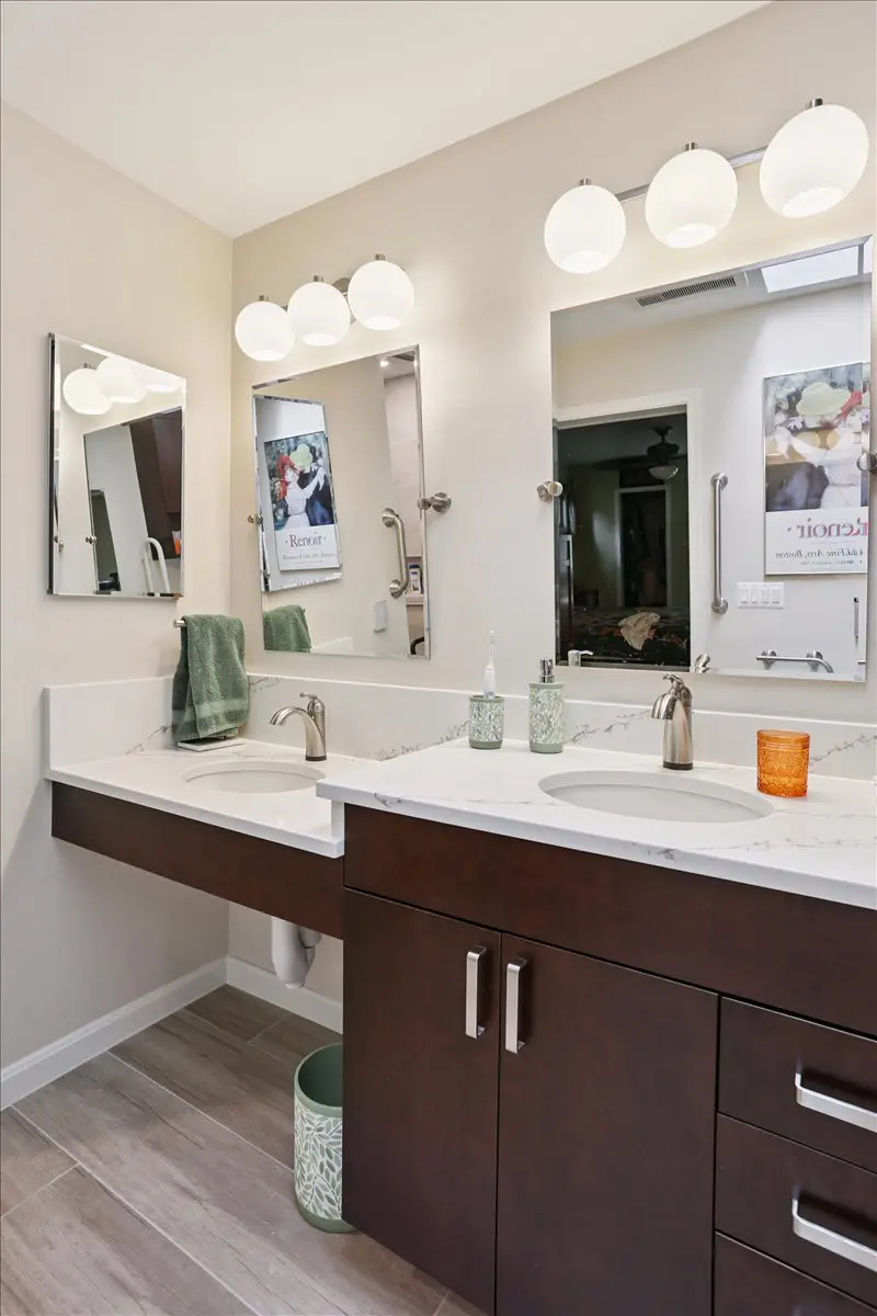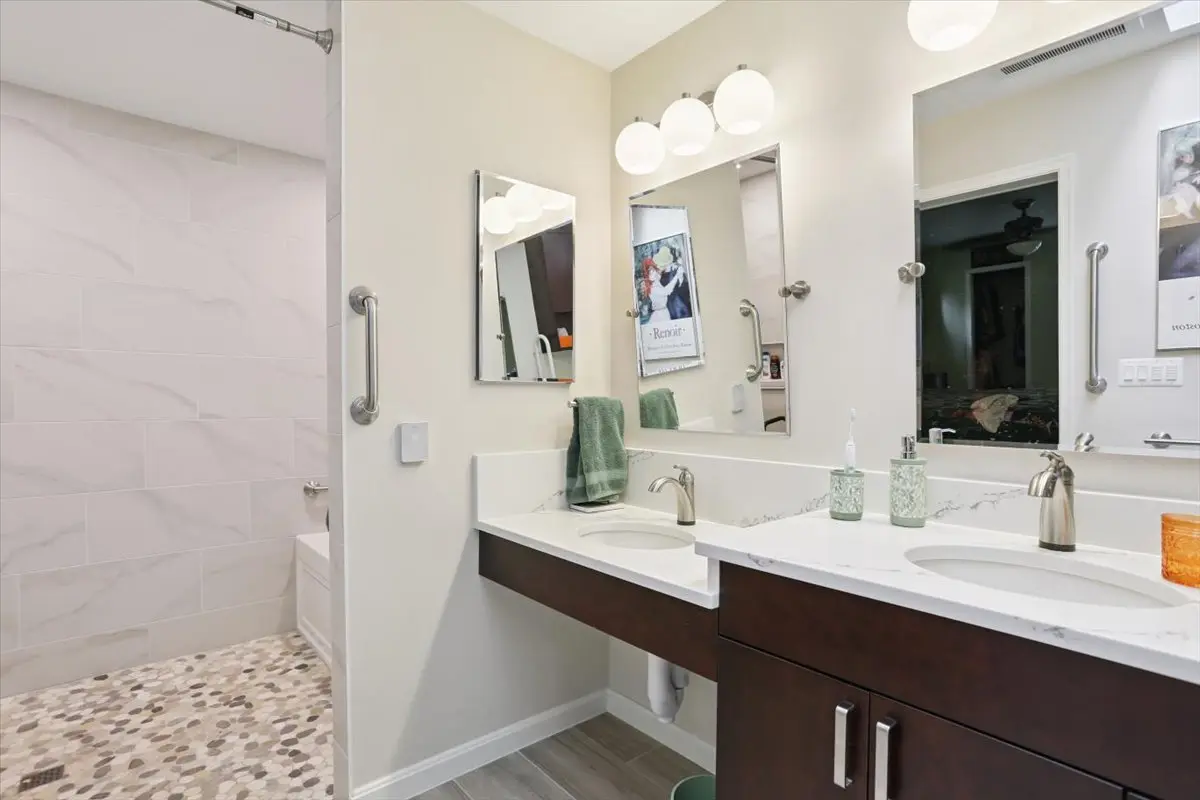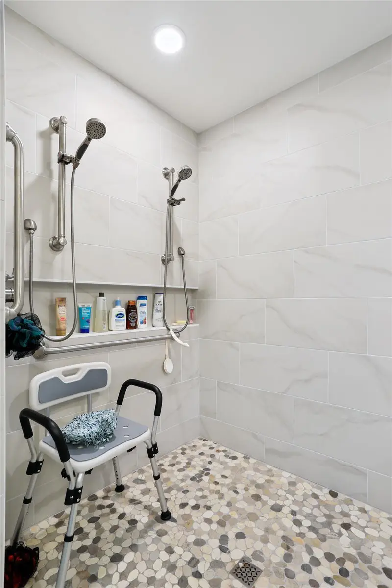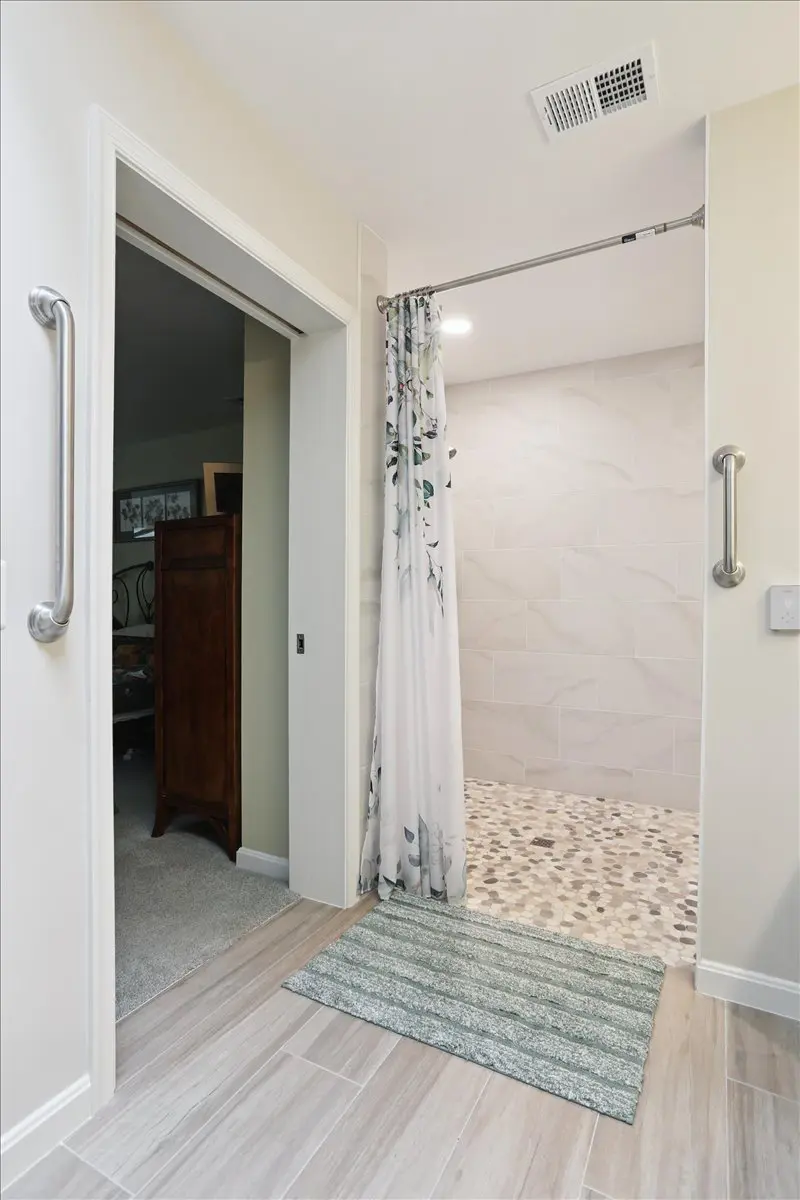 The result is a beautifully unified primary suite that blends comfort, accessibility, and timeless design. The new wet room layout offers ease of movement and safety without sacrificing aesthetics, while thoughtful details—like the floating vanity, heated floors, grab bars, and widened doorways—create a space that’s as functional as it is inviting.